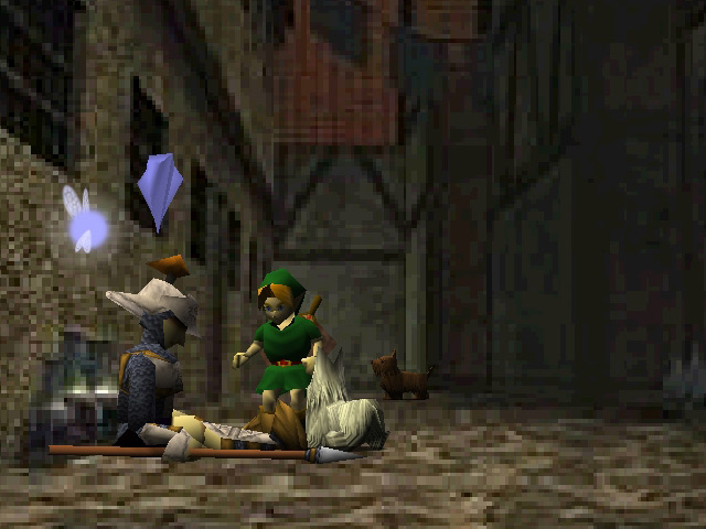 Immediately after Zelda flees Hyrule Castle, enter the Back Alley. You'll find a wounded guard lying against the wall. He'll talk to you for a while, then stop moving.