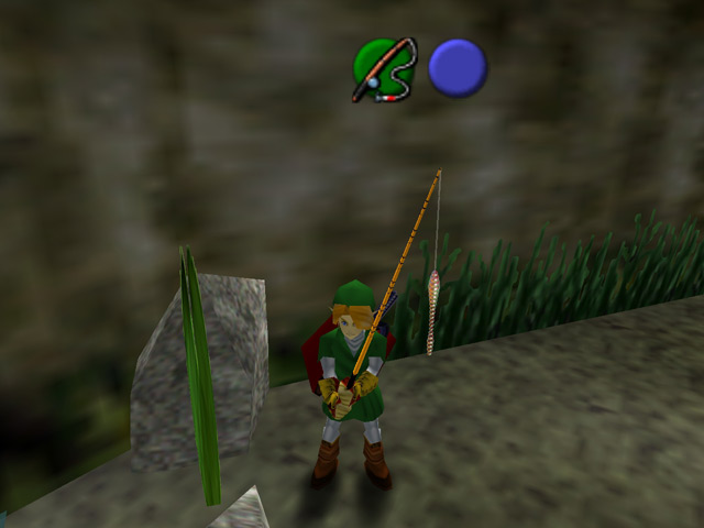 The Hylian Loach is a large, eel-like fish that is hard to find and even harder to catch. It typically only comes out at daybreak or sunset, and hangs at the bottom of the pond or under lilypads. The easiest way to see it is to wait until you hear the cuckoo at sunrise or the wolf at sunset and enter the Fishing Pond. Equip the Iron Boots, wade out into the pond, and look for it underwater. Ocassionally, the Loach will rise to the surface for a moment, during which it can be Z-targeted. The sinking lure is practically required to catch this fish, unless you can snag it while it's surfacing. The Hylian Loach weighs over 30 pounds.